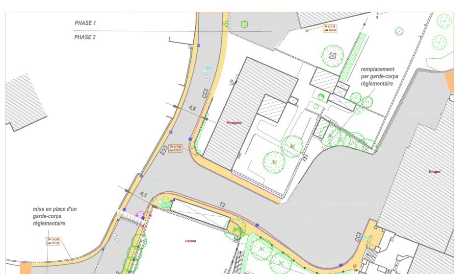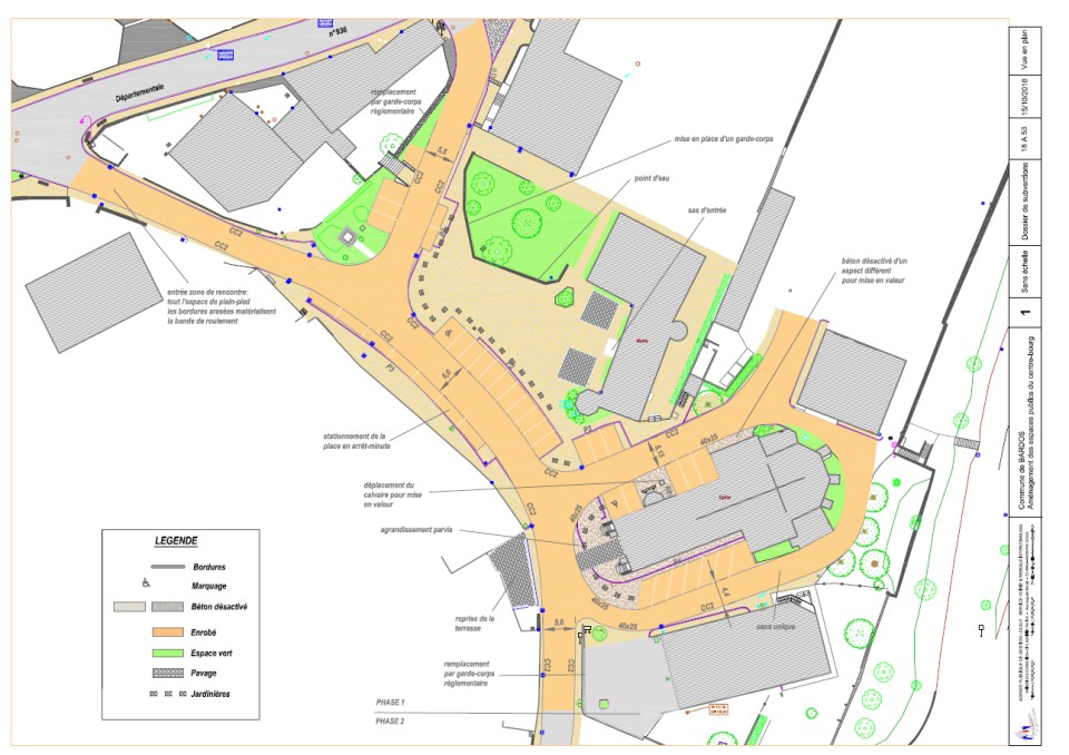 Amainatjament deus espacis publics de la RD 936 a la glèisa